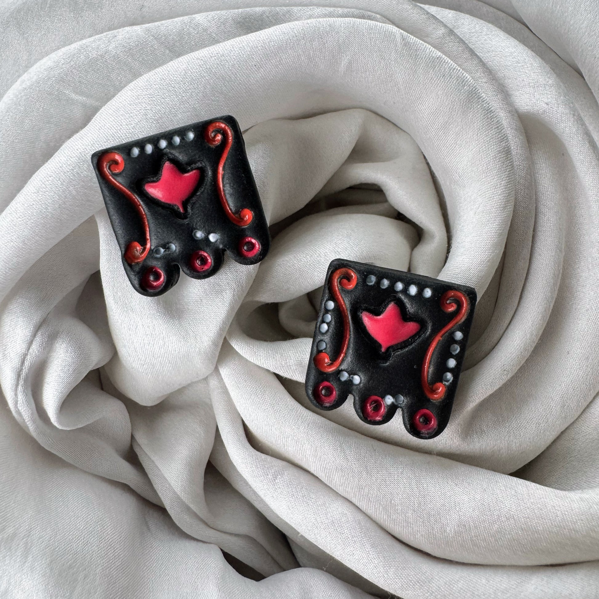 - Materials: Polymer clay, liquid polymer clay, and silver or gold plated stud closure
