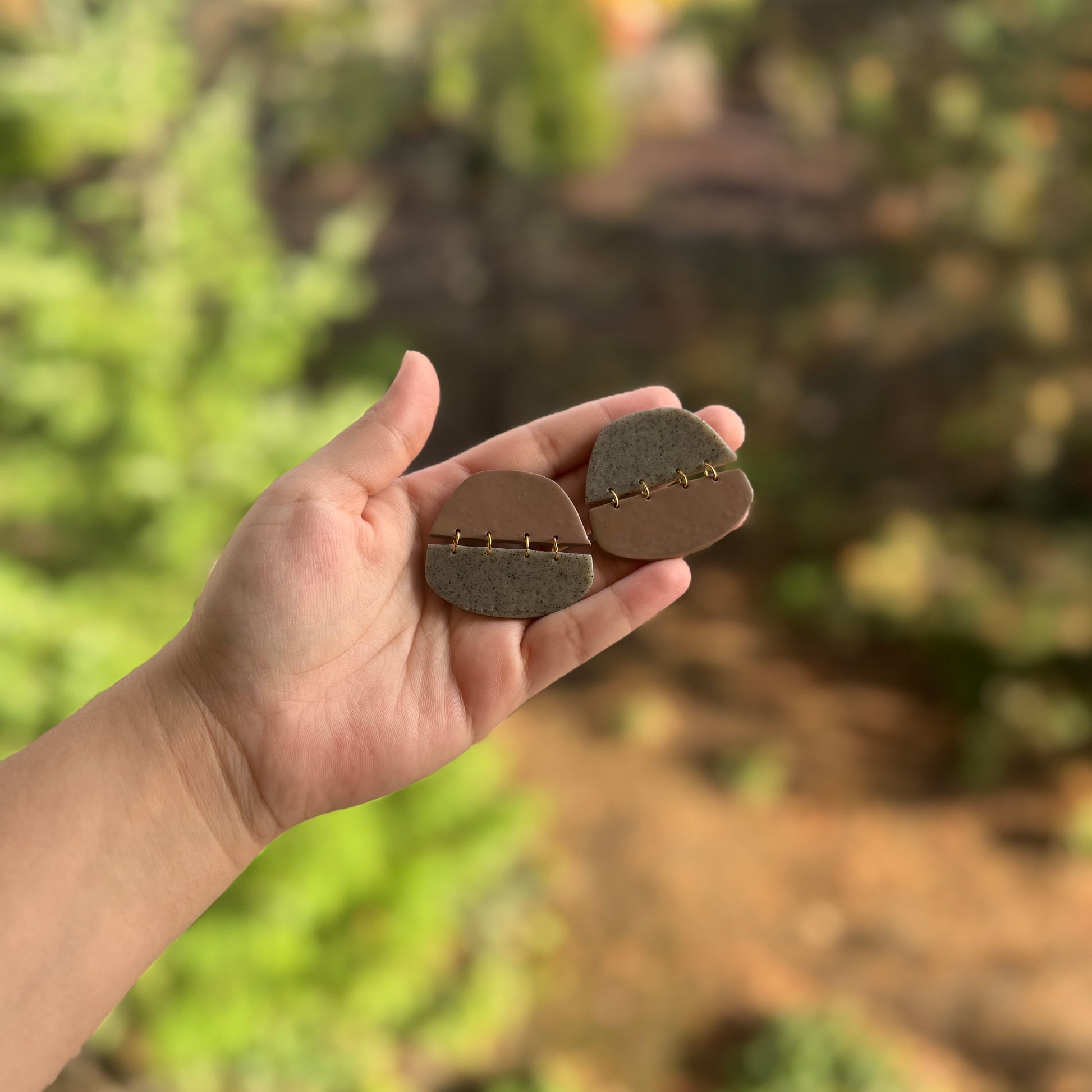 - Materials: Polymer clay, gold plated jump rings, and gold plated stud closure